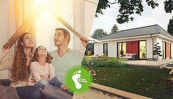 Die Town & Country Haus Vollausstattung setzt auf den Neubaustandard „Effizienzhaus GEG 2023“ und ermöglicht Ihnen als Bauherr bereits heute den Neubaustandard von morgen, ohne Mehrkosten. Denn in der Vollausstattung ist bereits eine Luft-Wasser-Wärmepumpe, eine Fußbodenheizung sowie eine Photovoltaik-Vorrüstung inklusive. Denn den Primärenergiebedarf von 55 % des Referenzgebäudes können Sie mit einer eingebauten Luft-Wasser-Wärmepumpe erreichen.